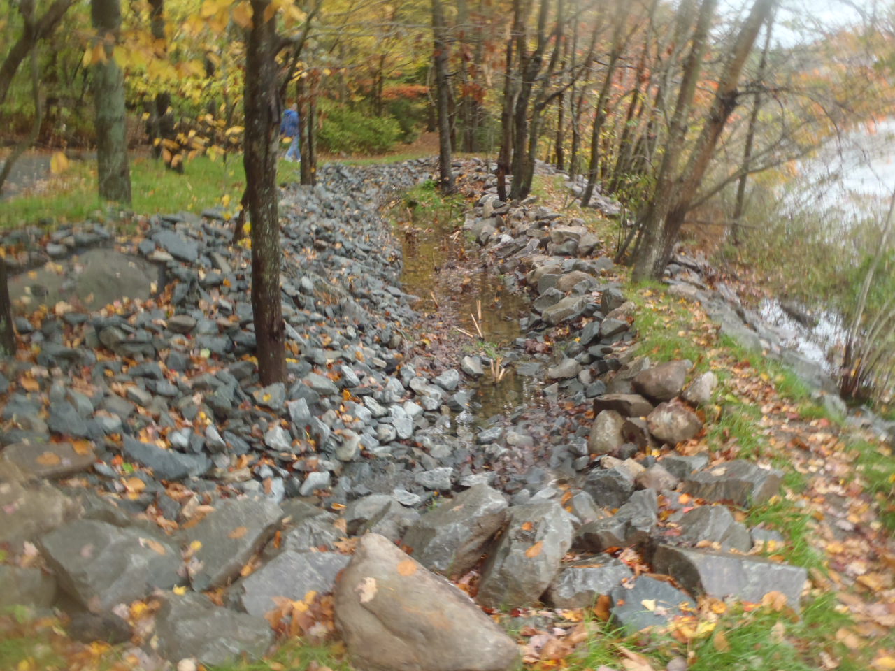 Now the water is diverted into the pond which mimics the natural environment where phosphorous and other harmful elements are filtered out by plants and soil.