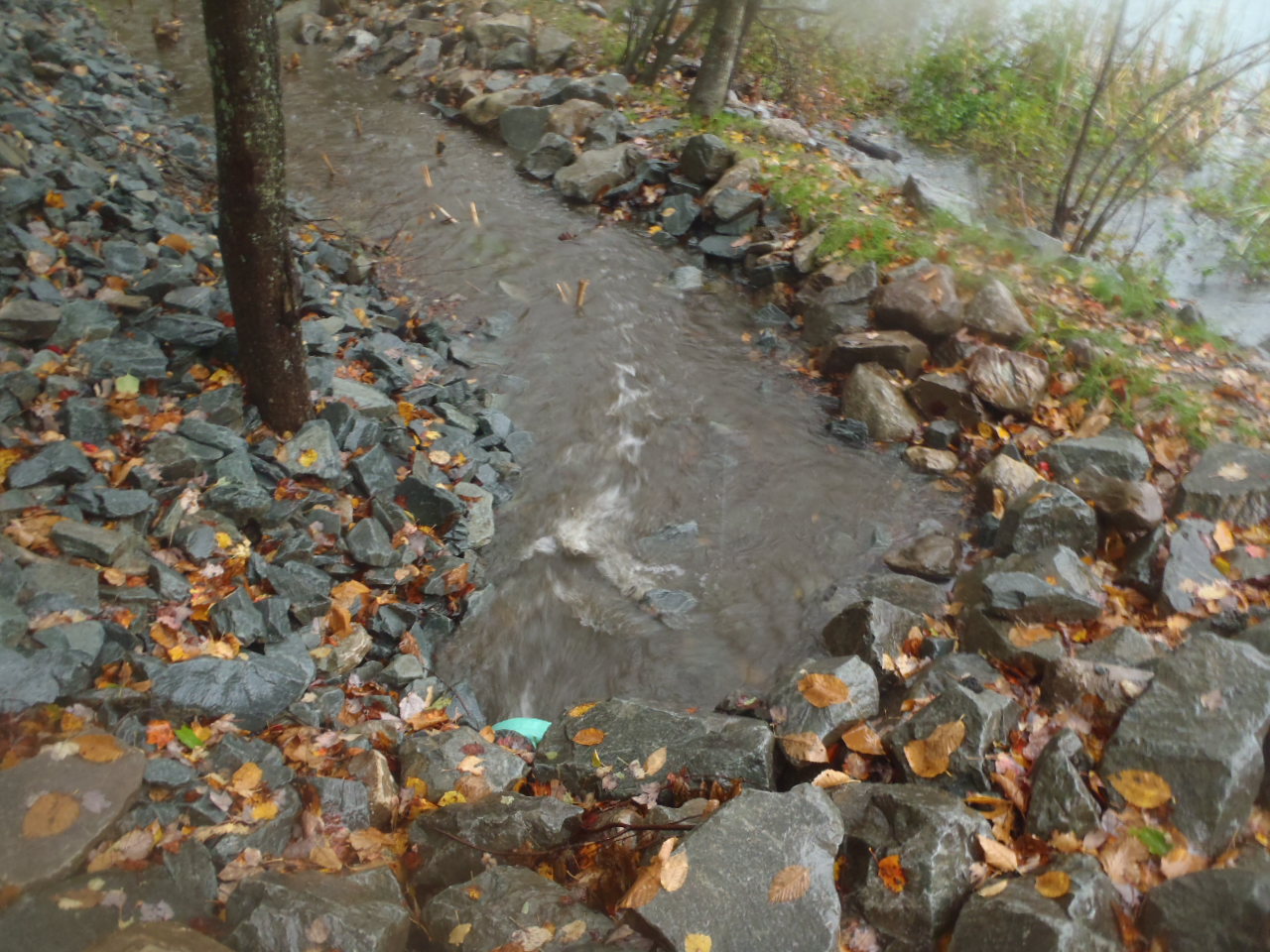 Before the creation of the storm sewer retention pond, the storm sewer emptied directly into the lake. The water carried with it the pollutants from the street.